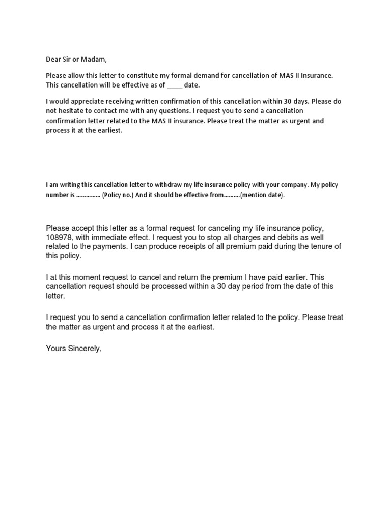 How To Write A Letter To Cancel An Insurance Policy With Samples